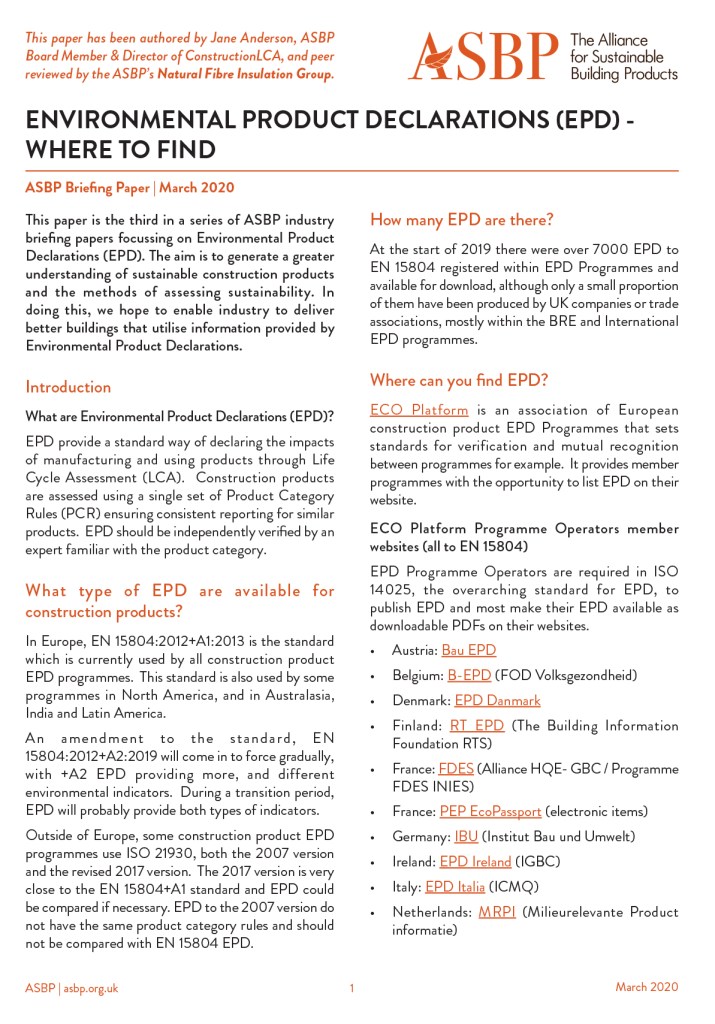 If you are looking for EPD or generic LCA data for construction products, then my Briefing Paper for the Alliance for Sustainable Building, “Environmental Product Declarations (EPD) – Where to find them” is a great place to start, providing links to all the existing EPD programmes and databases around the world (that I’m aware of – please let me know if you find others).